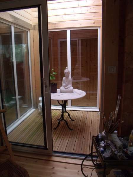 Visite d'une maison bois massif d'inspiration Feng shui avec sa cour intérieure